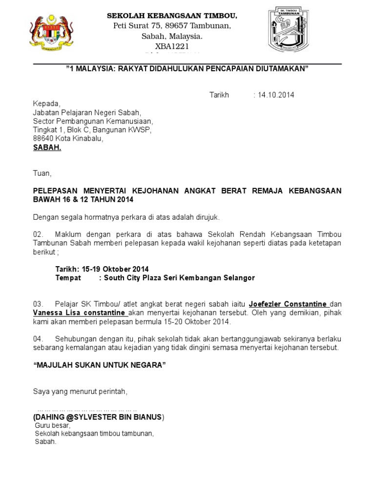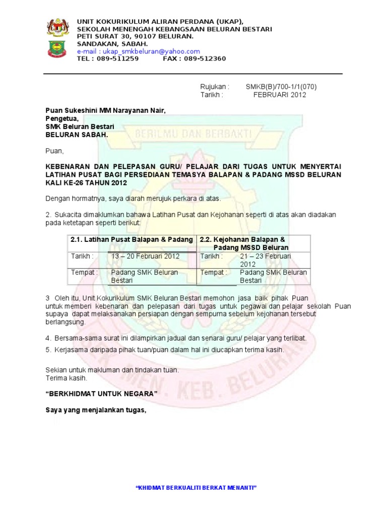 Contoh Surat Pelepasan Latihan 2012 Pdf